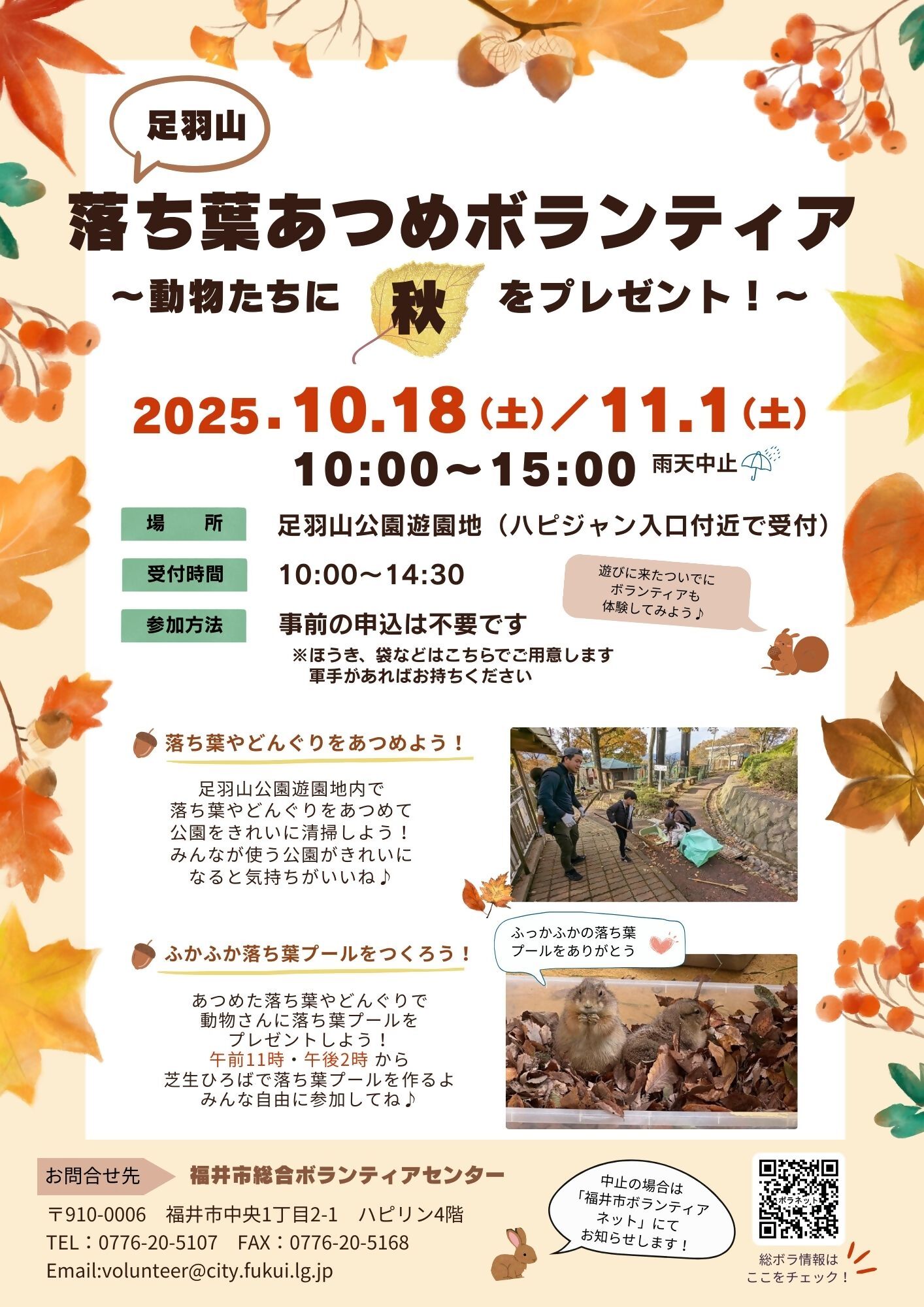- 足羽山で落ち葉あつめボランティア ~動物たちに秋をプレゼント!~(新しいウィンドウが開きます)
